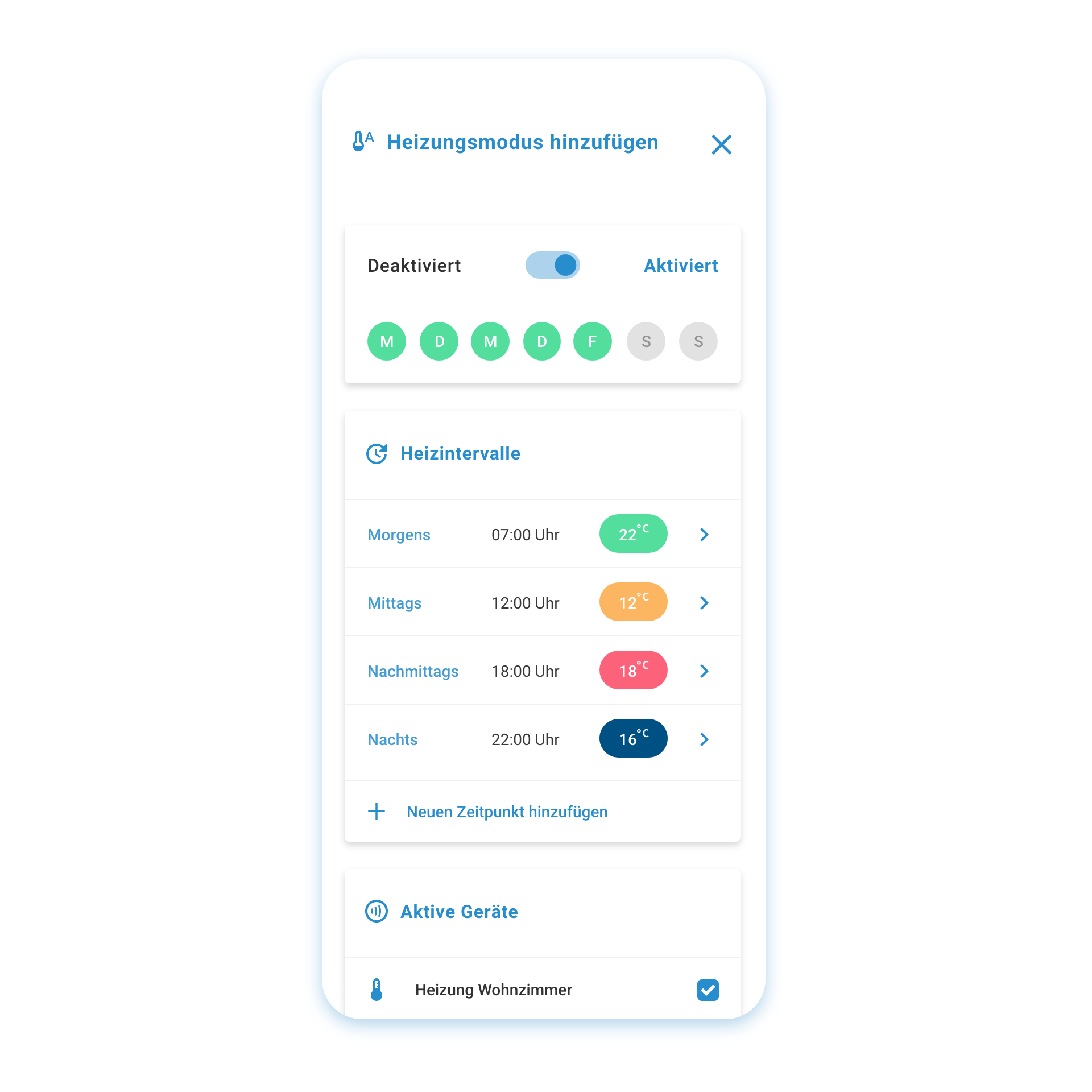 - Automatisierte Steuerung: Sobald der Heizungsmodus aktiv ist, übernehmen deine smarten Thermostate die voreingestellten Temperaturen gemäß deinem Zeitplan. Dadurch wird keine Energie verschwendet, da die Heizung nicht unnötig läuft.
